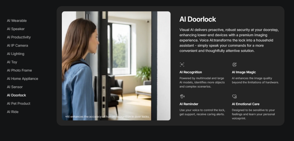 Tuya’nın akıllı kilitlere AI yedirme yaklaşımı iki yönlü. Birincisi Visual AI: Kapıdaki kameraya proaktif ve güçlü güvenlik kazandırıyor; düşük donanım segmentinde bile premium görüntüleme deneyimi mümkün oluyor. Çoklu modal ve büyük AI modelleri sayesinde daha çok nesne ve karmaşık senaryo tanınıyor, AI donanımın sınırlarının ötesinde görüntü kalitesini iyileştiriyor. İkincisi Voice AI: Kilit, evin asistanına dönüşüyor; sesle kontrol edebiliyor, destek alabiliyor, şefkatli uyarılar duyabiliyorsunuz.
