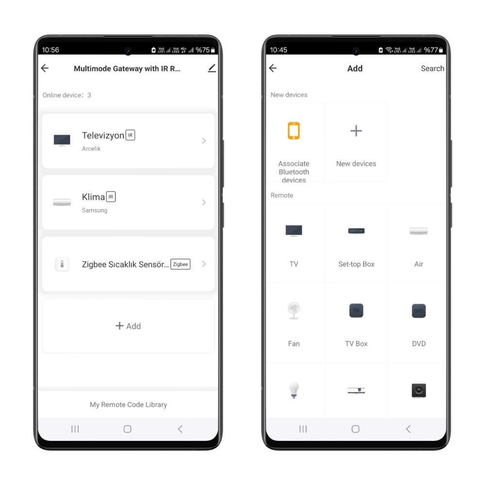 - DIY Öğrenme Modu: Markası listede olmayan cihazlar için orijinal kumandayı kullanarak tuşları ağ geçidine kolayca tanıtabilirsiniz.