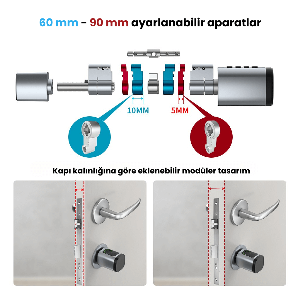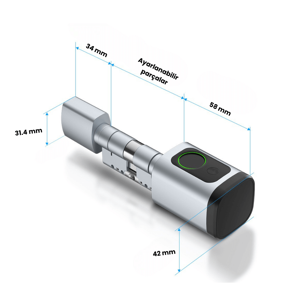 Mevcut kapı altyapınızla tam uyumlu olarak tasarlanan AKK-5B, standart silindirlerin yerine geçebilen, yüksek teknolojili bir güvenlik çözümüdür. Bluetooth (BLE) bağlantı teknolojisi ve çok katmanlı erişim yetenekleri ile hem bireysel hem de ticari alanlar için üst düzey güvenlik ve yönetim kolaylığı sunar.