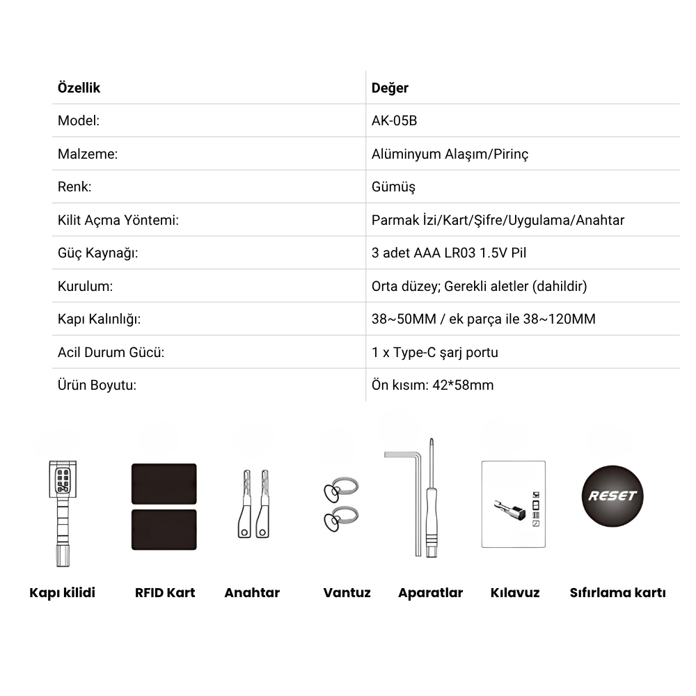• 1 x AKK-5B Akıllı Kilit