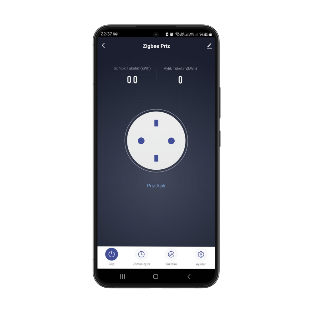 Anlık olarak voltaj, akım ve güç verilerini takip edebilirsiniz. Ayrıca uygulama üzerinden günlük, aylık ve yıllık tüketim geçmişini inceleyebilirsiniz. Bu sayede enerji kullanımınızı kolayca analiz edebilirsiniz.
