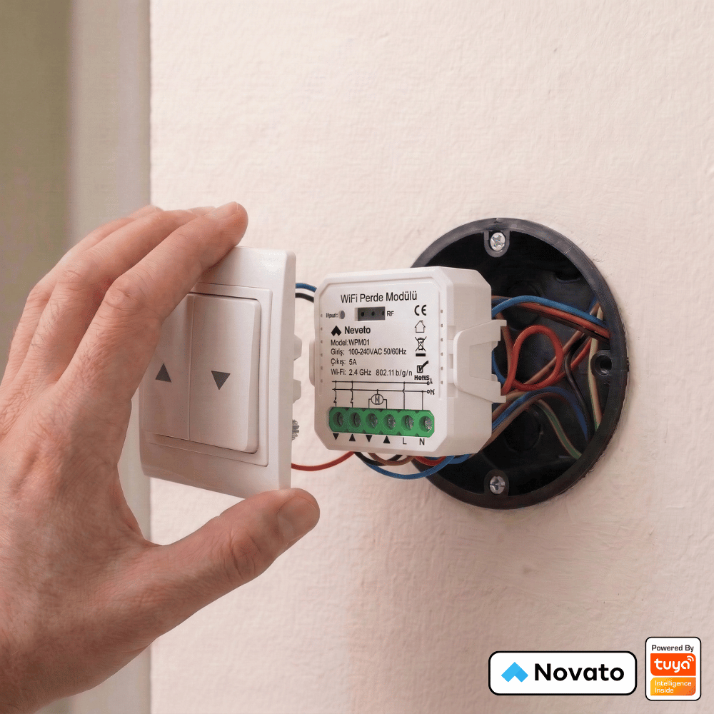 Panjur rölesi, mevcut panjur motorları veya mevcut basmalı anahtarlar ile kullanılabilir, mevcut panjur sisteminizi akıllı hale getirebilir. Bu panjur rölesi anahtar arkasına sığacak kadar küçüktür ve anahtar kasasına yerleştirilebilir.