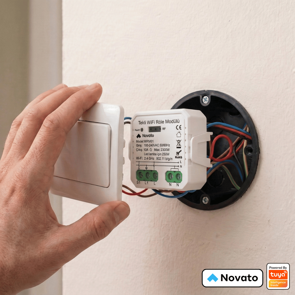 Geleneksel anahtarları değiştirmeden akıllı anahtar sahibi olabilirsiniz. Var olan anahtarın arkasına sığacak boyutlarda tasarlanan akıllı röle ile ışıklarınızı hem telefonunuzdan hem de duvar anahtarından kontrol edebilirsiniz. Senkronize çalışması sayesinde duvar anahtarından kontrol ettiğinizde bile uygulamada açık kapalı durumu güncellenecektir.