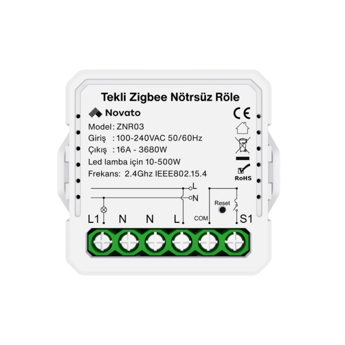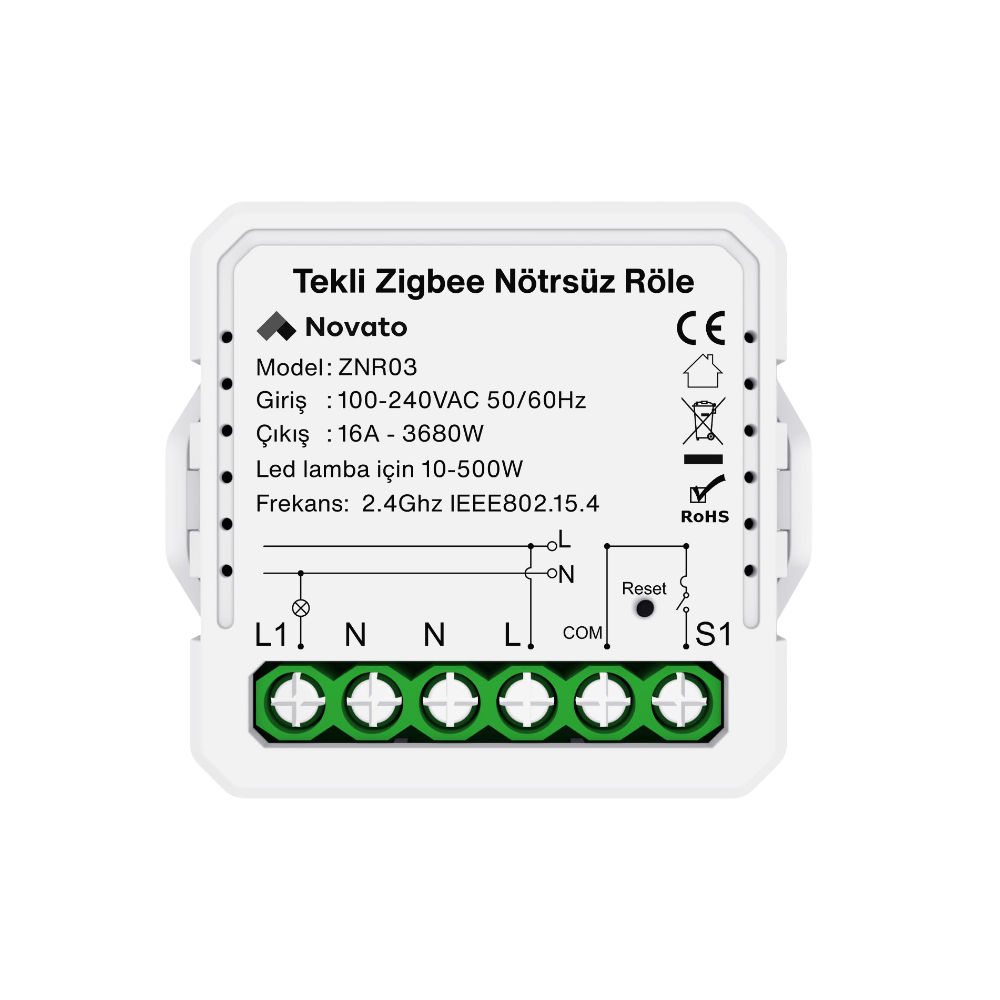 Zigbee Nötrsüz Tek Çıkışlı Röle