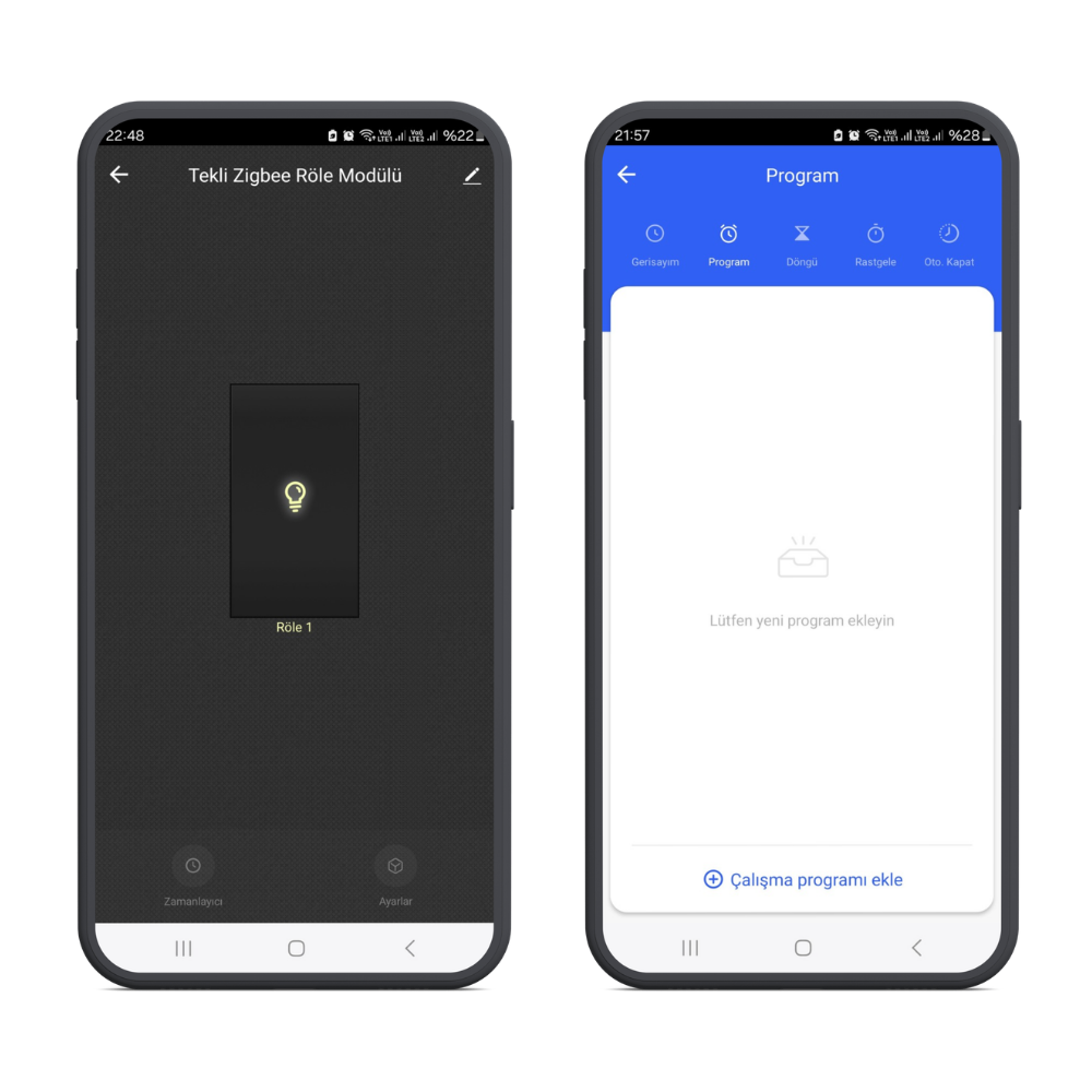 Belirtilen zamanda röleleri otomatik olarak kapatmak veya açmak için bir zamanlayıcı ayarlayabilirsiniz. Örneğin, yatma zamanında röleyi 15 dakika sonra kapatacak şekilde programlayabilir, hava karardığında otomatik olarak açılacak şekilde ayarlayabilirsiniz. Hafta sonları uzun süre dışarıda kalırsanız, ışıklarınızı rastgele açıp kapatacak bir zamanlayıcı etkinliği ayarlayarak, evde olduğunuzu düşündürüp hırsızları uzak tutabilirsiniz.