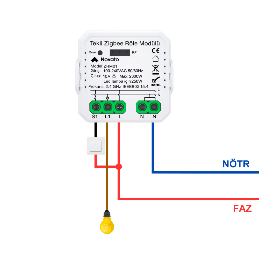 Zigbee Tek Çıkışlı Röle