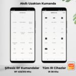 IR ve RF 433 Mhz alıcılı , Tuya uyumlu WiFi akıllı kumanda ile , mobil uygulama üzerinden hem IR hem de RF kumandaları kontrol edebilirsiniz.