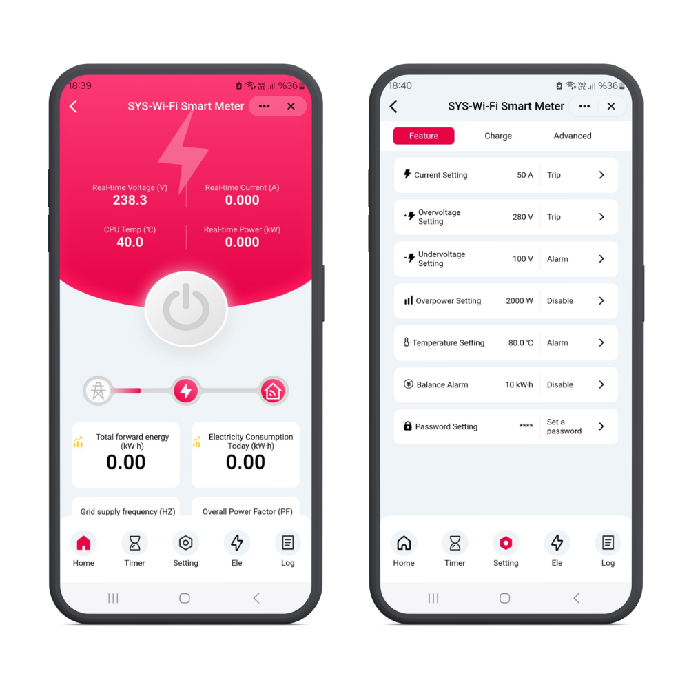 WiFi 50 Amper Ekranlı Enerji Ölçer Akıllı Sigorta