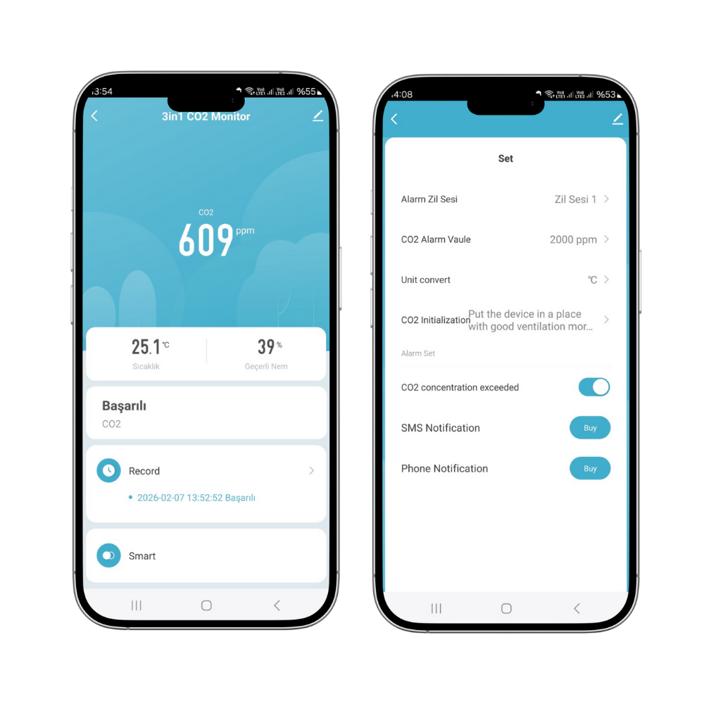 - Kişiselleştirilebilir Sesli Alarm: CO₂ seviyeleri, sizin belirlediğiniz kritik bir değere ulaştığında sesli alarm ile sizi uyarır. Bu sayede ortamı havalandırmak gibi gerekli önlemleri anında alabilirsiniz.