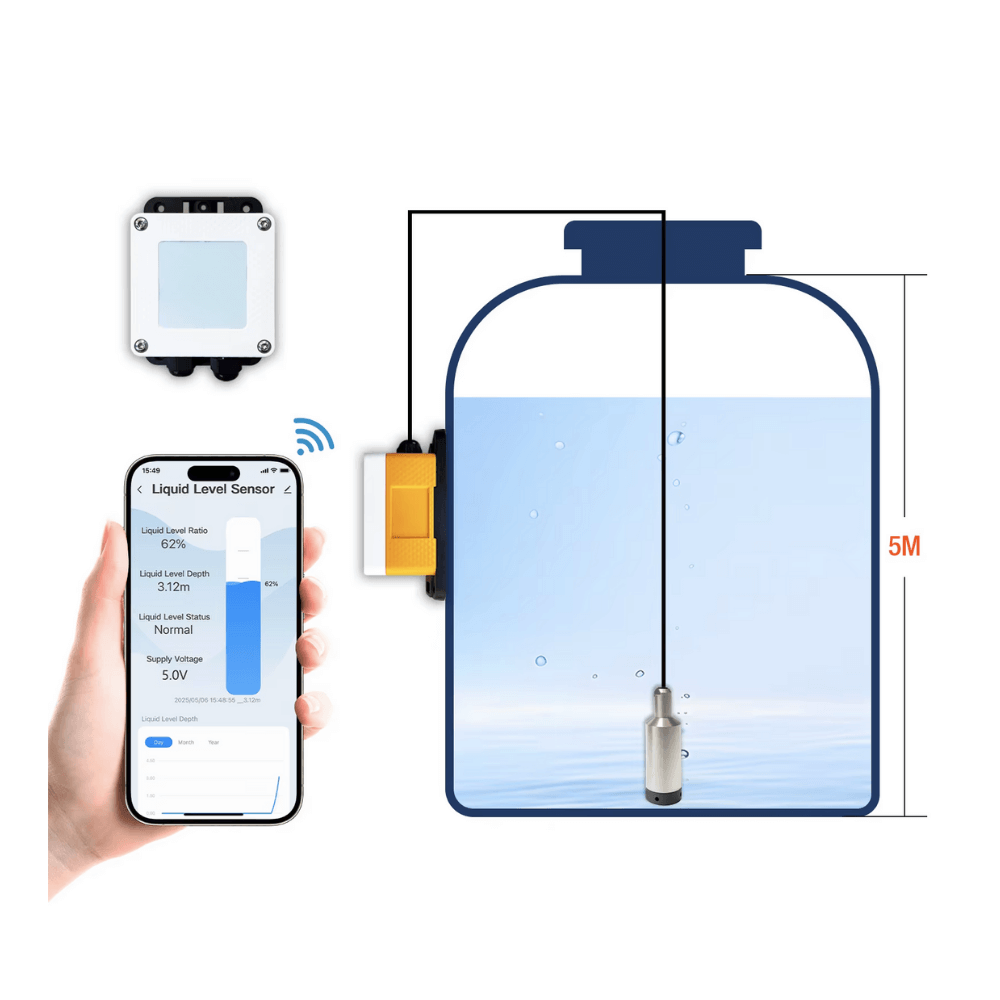 WSS-04, su depoları, yeraltı sarnıçları ve kuyular için özel olarak geliştirilmiş, endüstriyel hassasiyete sahip kablosuz bir su seviye izleme sistemidir. Hidrostatik basınç prensibine dayalı gelişmiş sensör teknolojisi sayesinde su seviyesini yüksek doğrulukla ölçer ve Tuya Smart / Smart Life uygulamaları üzerinden dünyanın her yerinden anlık takip imkânı sunar.