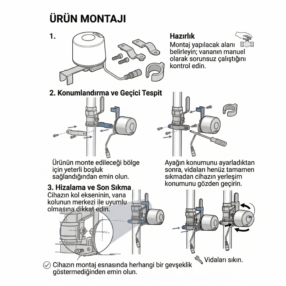 - NM (Newton Metre): 30-60Kg.cm, vananın zorlamadan açma kapama yapmasını sağlar.