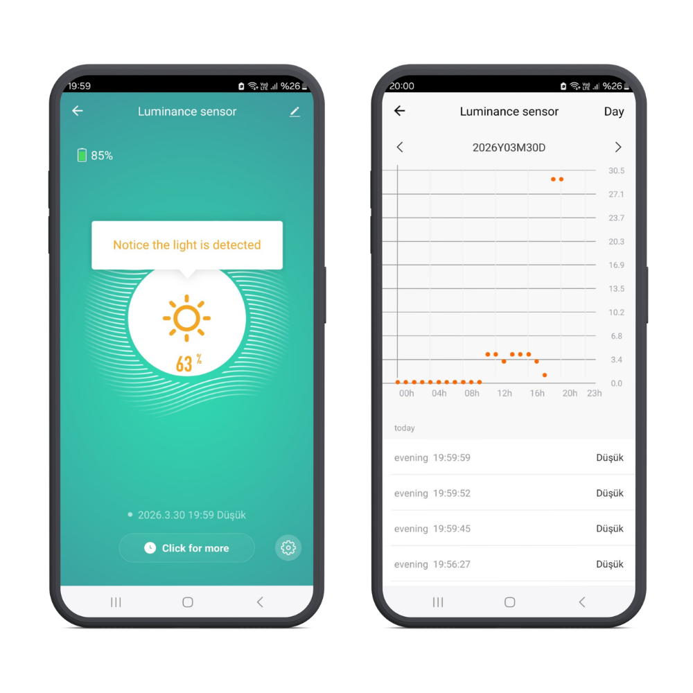 Tuya, Smart Life uyumlu, 0.01~83000LUX algılama kapasiteli, 2 adet AAA pil ile çalışan, zigbee parlaklık sensörü.